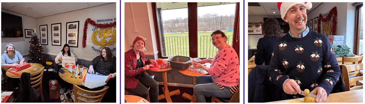 Our heartfelt gratitude extends to everyone who contributed, including Waitrose Community Grant for generously funding the meals. Notable contributions from Liam Miller, Adam Palmer, and Adam Cornford, current and ex-players, added a touch of sweetness with chocolates, biscuits, poinsettias, and gifts for children. Sue Newell’s homemade mince pies were a delightful addition to our care packages.