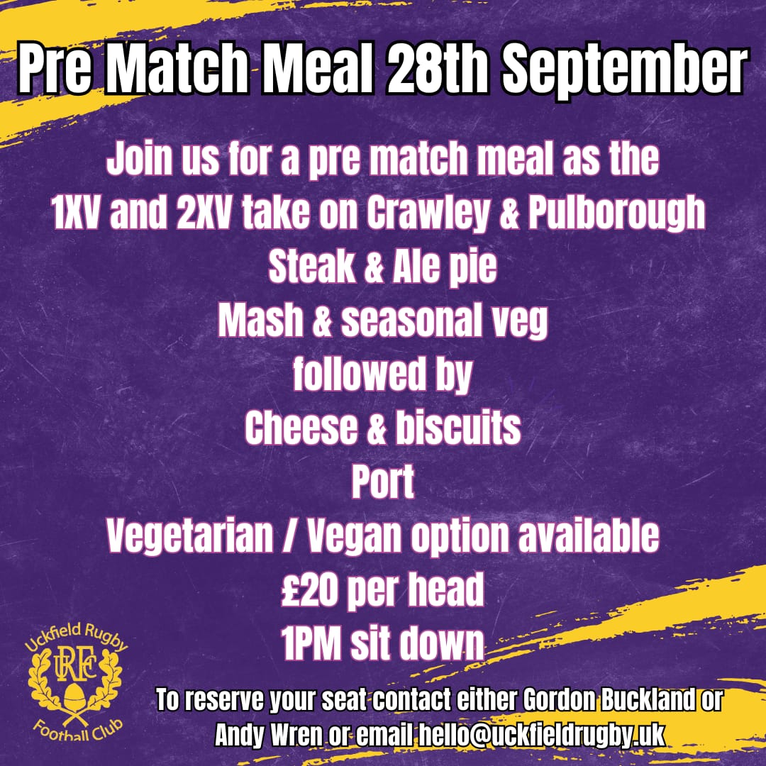 On September 28th, the 1XV welcome Crawley, the 2XV welcome Pulborough 2XV and now we would like to welcome YOU to join us for a pre-match meal!