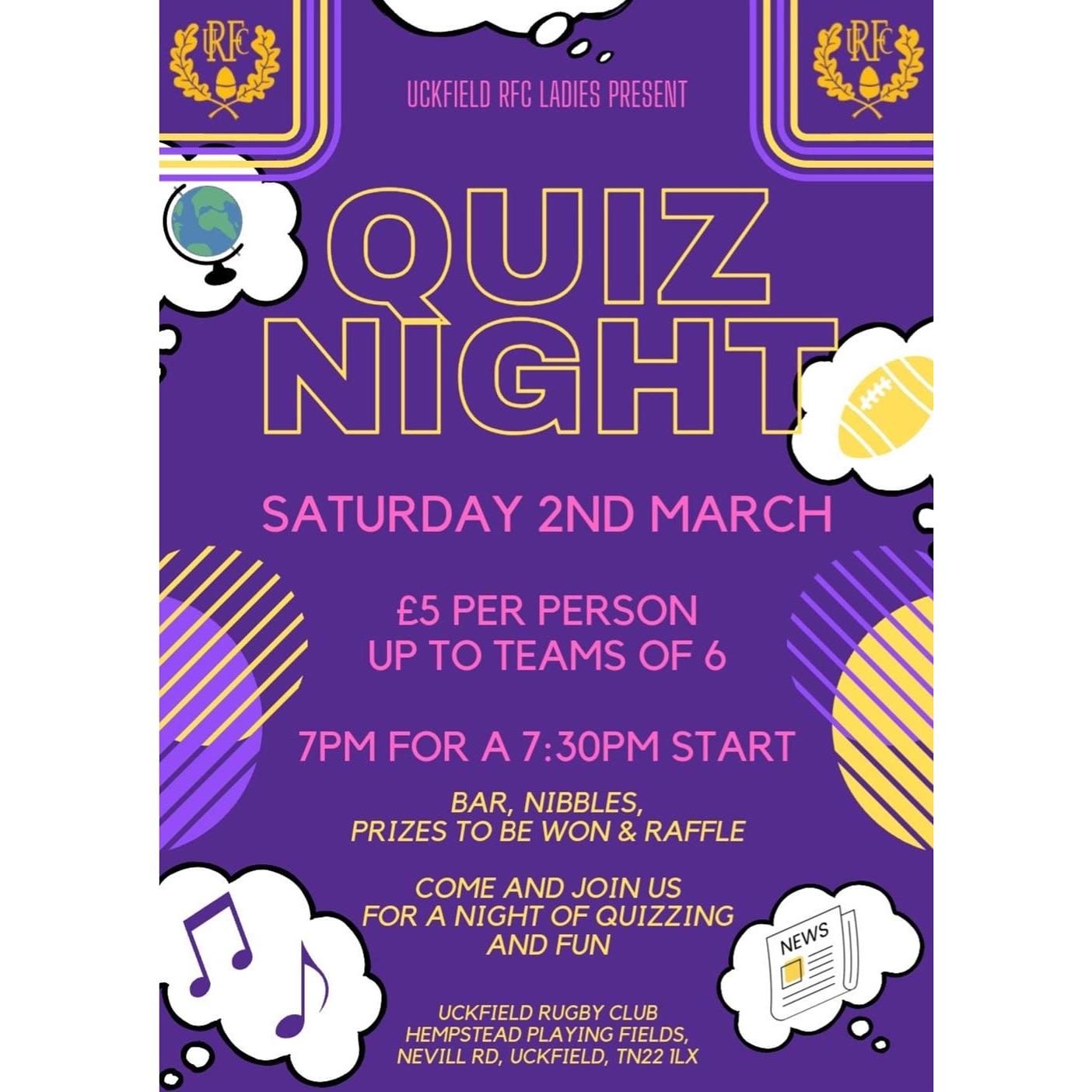 If you want to show off how brainy you are whilst raising money for Uckfield’s local women’s rugby team, come down to the rugby club next Saturday 2nd March at 7pm!