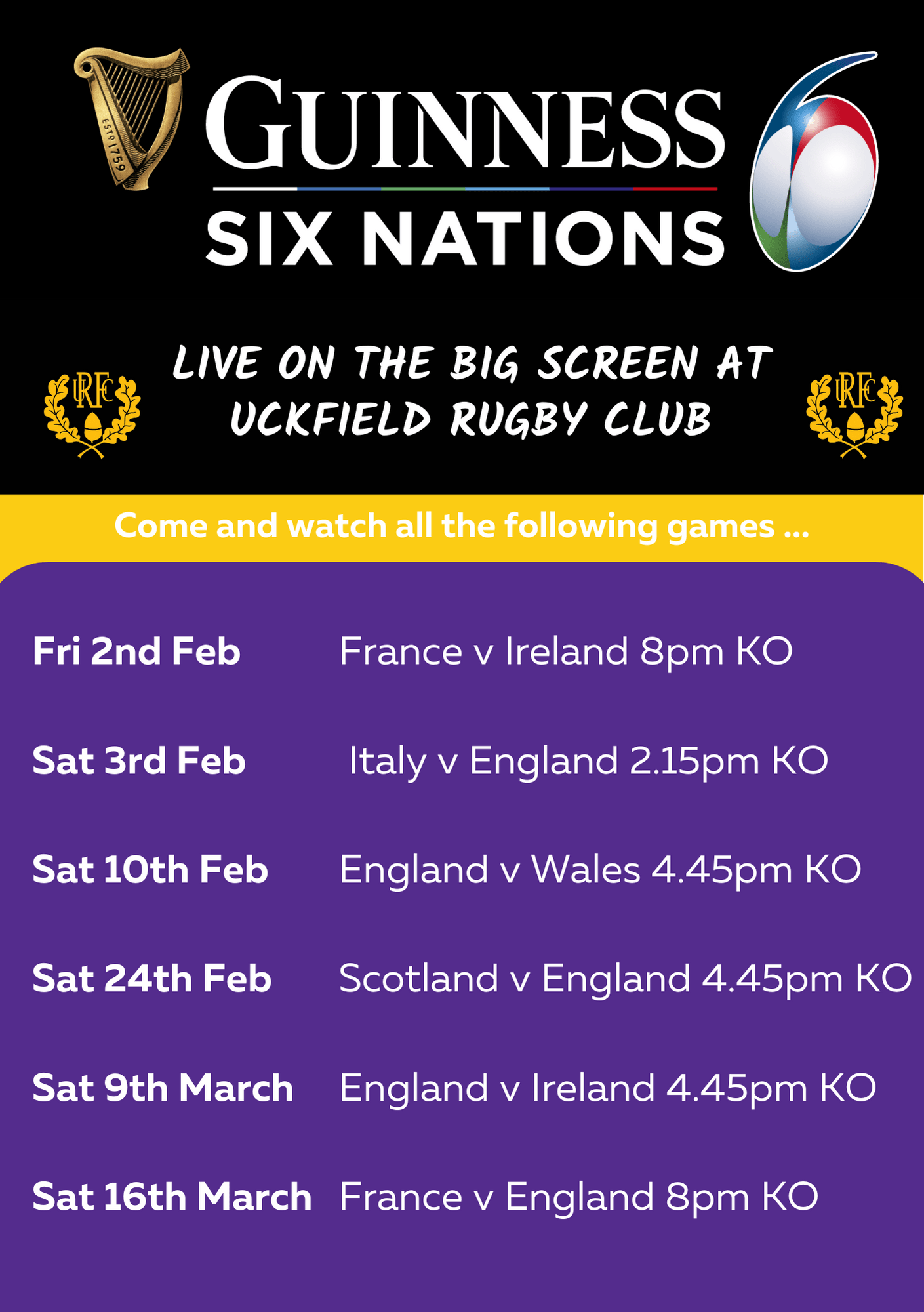 Come down to the club and watch the Six Nations game live on the big screen! All welcome.